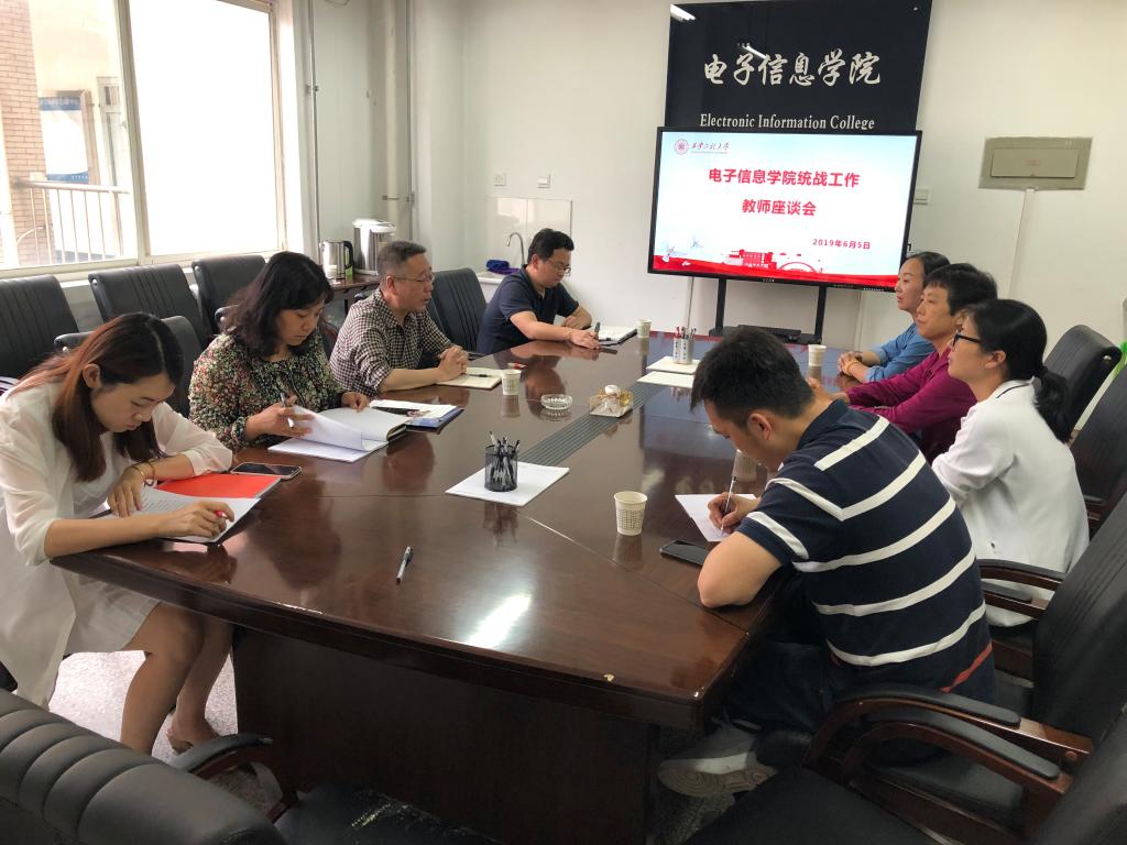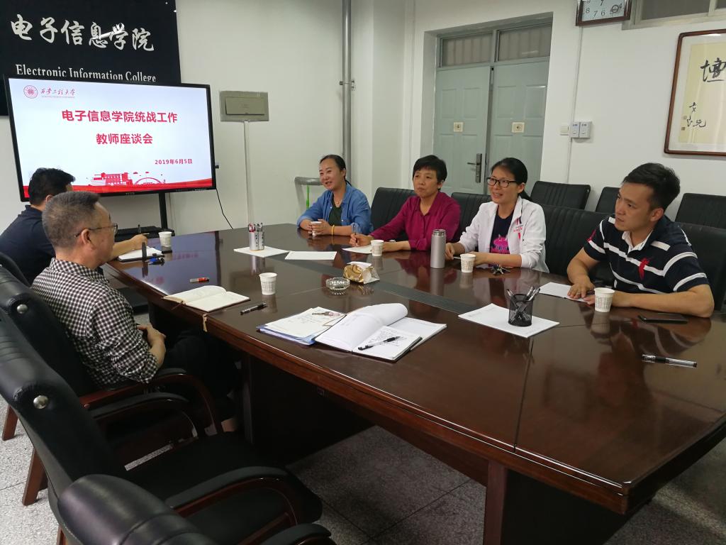 2019年6月5日下午,jxf吉祥网手机在线在临潼校区电信楼414会议室召开学院统战工作教师座谈会,听取学院民主党派、无党派教师对学院工作的意见和建议。学院党委书记杨恩科、副书记刘许、院办主任孙宁、学工办主任朱宇军及学院民主党派、无党派教师林晓焕、顾梅花、李珣、张莉参加了座谈,会议由学院党委书记杨恩科主持。