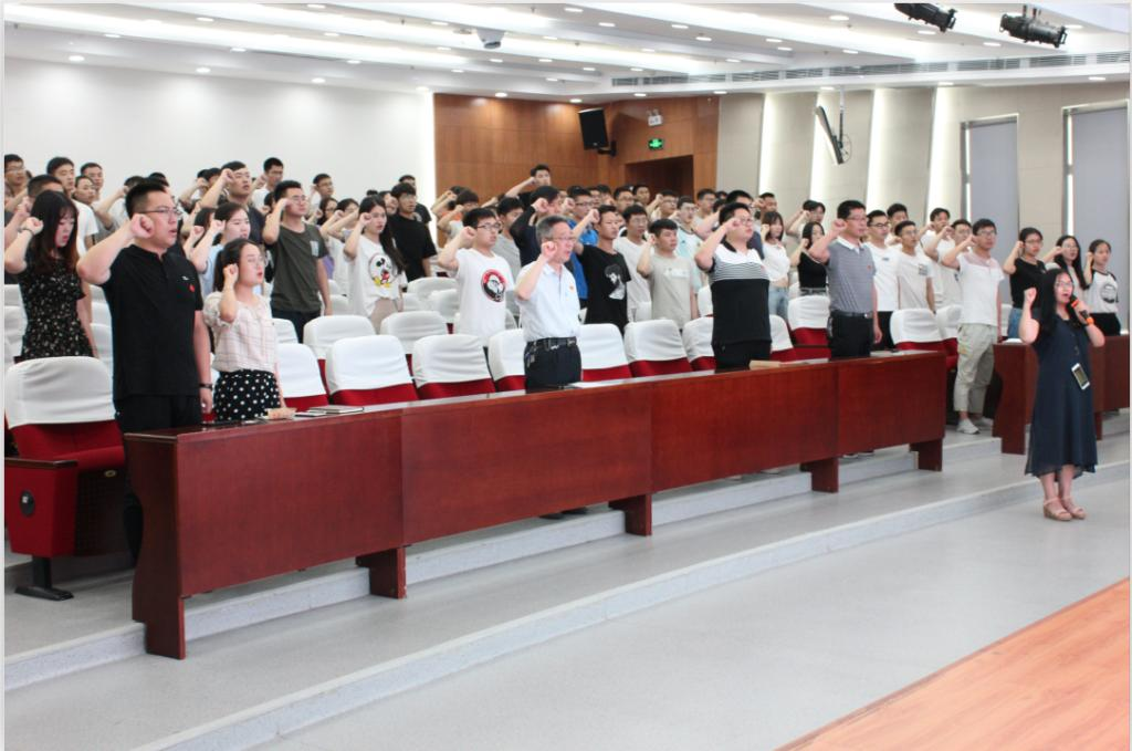 大会接下来进行集体宣誓,重温入党誓词仪式。全体毕业生党员首先观看了由入党誓词拍摄的视频《我宣誓》,视频中激情澎湃、振奋昂扬的画面及习近平总书记领誓入党誓词的原声,一次次鞭策、提醒着大家,提醒着在场的党员们要自觉履行党员的责任与义务、要主动肩负起新时代赋予我们每一个人的责任与使命!然后在副院长李云红的带领下,全体毕业生党员面向党旗,举起右拳,重温入党誓词,表达自己为共产主义事业奋斗终身的理想和信念。