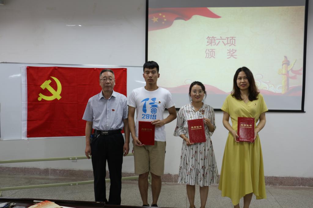 大会接下来进行表彰仪式。学生第三党支部书记曹智宇宣读了表彰文件,对学生第四党支部等3个先进党支部,魏夕朦等28名优秀党员及刘芃江等3名优秀信息员进行了表彰。