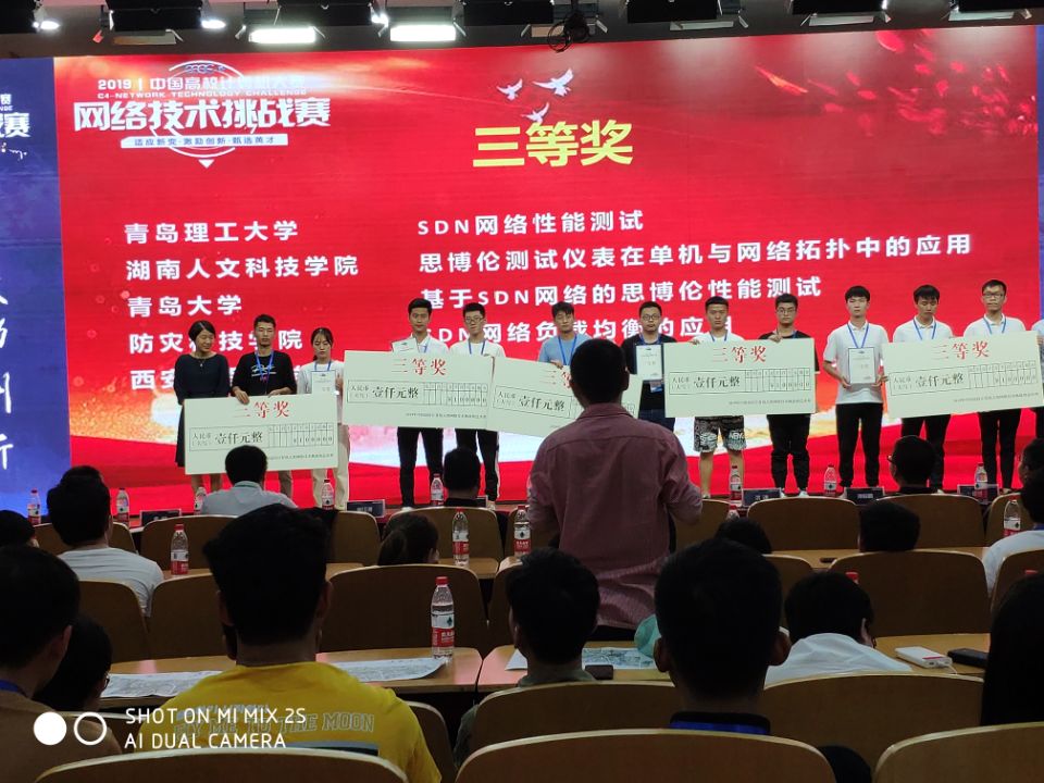 本次大赛全国共有313所院校、1206支队伍、4903名学生参加竞赛,参赛规模较去年翻番,其中包括清华大学、浙江大学、上海交通大学、国防科大、电子科技大学等知名高校。大赛经过资格赛和选拔赛,有84件作品参加在温州大学举办的全国总决赛。我校jxf吉祥网手机在线教师苏军、计算机科学学院教师赵旭指导的我校董凯、张晨飞、胡俊华、陈恬静等4名同学的作品《基于SpirentTestCenter的SDN校园网的部署测试实现》获全国三等奖。
