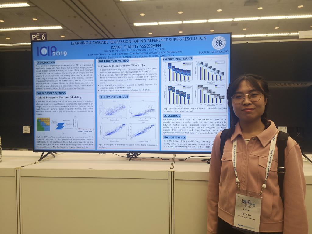 9月23日上午,张凯兵教授其研究生朱丹妮对本次会议录用的论文“Learning a cascade regression for no-reference super-resolution image quality assessment”(基于级联回归学习的无参考型超分辨图像质量评价方法)进行了海报展示和汇报,针对图像质量评价领域的研究进展和发展趋势与国内外学者进行了深入交流与讨论。与会期间,张凯兵教授及其研究生还参加了深度学习技术、图像与视频质量评价和图像与视频分析等多个分会场会议。