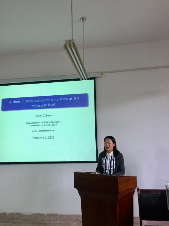 David Cubero教授以《A short intro to computer simulation at the molecular level》为题,结合自身的研究背景以及我校相关专业事情的具体情况,深入浅出的为大家阐释了量子体系与经典物理体系的不同,并就如判断量子粒子与经典粒子,分子模拟的基本原理,基本方法以及常用软件进行了相关介绍,根据实际问题解释如何将分子模拟应用到实际科研中,开阔了研究视野,夯实了理论基础。