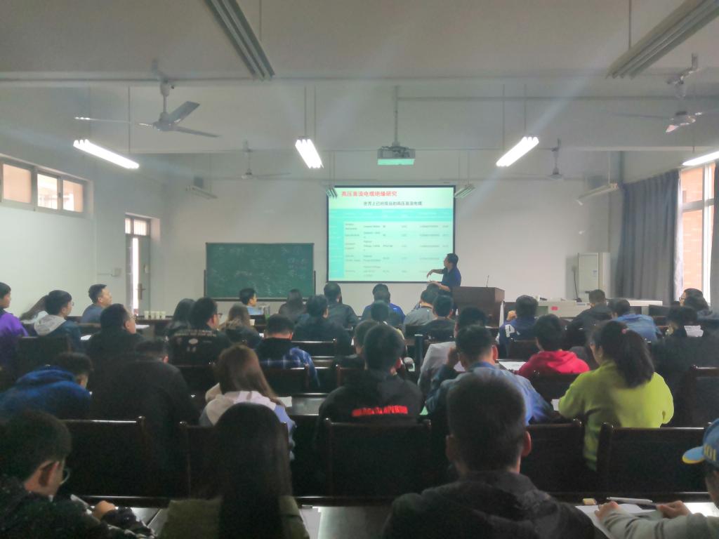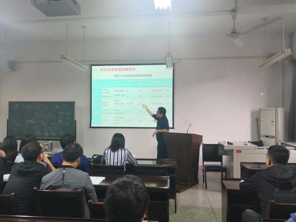吴锴教授在《直流设备绝缘的基础问题研究》的报告中,以“特斯拉和爱迪生之争”引出了高压直流输电设备的一些基础研究热点问题,对目前国际国内该领域的研究水平和应用现状进行了对比,提出了直流输电关于电阻率,温度梯度以及空间电荷等几大基础问题研究。报告对空间电荷的原理与结果分析,老化寿命的实验与计算模型等都进行了系统的介绍。由于吴锴教授是国内该领域享有盛誉的专家,其报告内容根据其本人课题组最新研究成果展开,不仅是知识体系的学习过程,更是科研思路的拓展过程。讲座结束后,参会老师、同学们就讲座中感兴趣的学术问题进行了激烈的交流和讨论,赵广社院长还针对研究生培养与创新与吴教授进行了交流与沟通,为今后进一步加强校级合作打下了基础。学术报告会气氛融洽,学术氛围浓郁。
