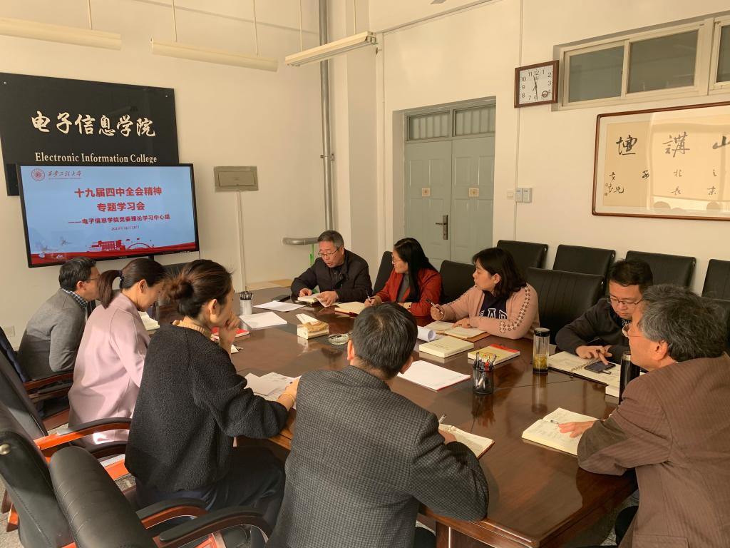 11月18日上午11:00,在电信楼414会议室,jxf吉祥网手机在线党委理论学习中心组召开专题学习会,集中学习党的十九届四中全会精神,学院党委理论学习中心组全体成员参加了会议。会议由院党委书记杨恩科主持。