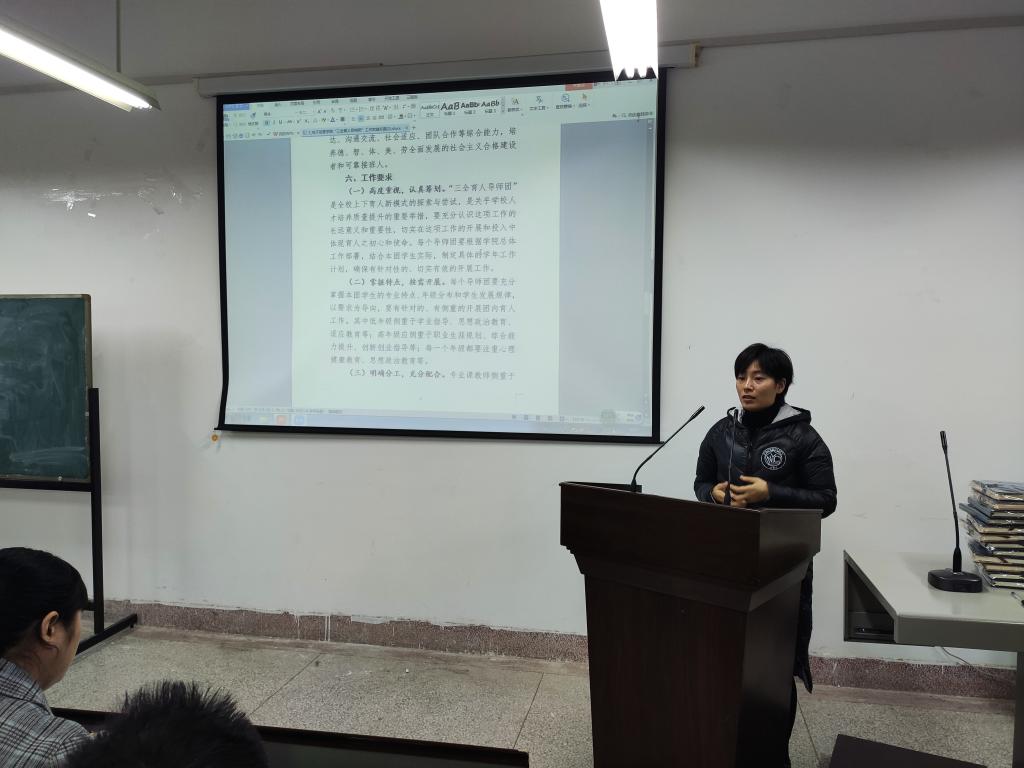 会上,卢健首先向同学们介绍了导师团成员的情况,他强调本次导师团建设是学校育人培养的一项创举,意在加强专业教师、学生培养机关部门同学生之间的联系,不断加强育人成果。卢健强调导师团工作的开展要结合自动化和测控两个专业的特色,从抓考研,抓就业,抓毕业设计三个方面入手,最终提升我团毕业生水平。