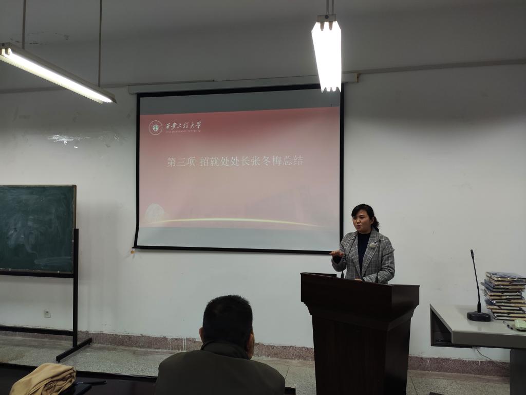 张冬梅做总结讲话,她结合自身的工作经历,指出了本次三全育人导师团工作开展的重要意义,并对同学们讲述了三点内容:一是要认清现况。张冬梅结合学生考研、就业等数据,为同学们讲述了目前的毕业形式;二是要夯实基础。希望同学们一定要注重日常的学习,一步一个脚印,为今后的道路打下坚实的基础;三是要立志高远。嘱咐同学们要立好志向,提前做好规划,未来杨帆远航。