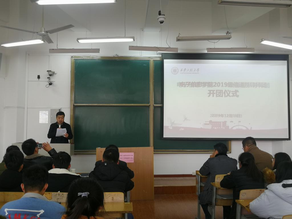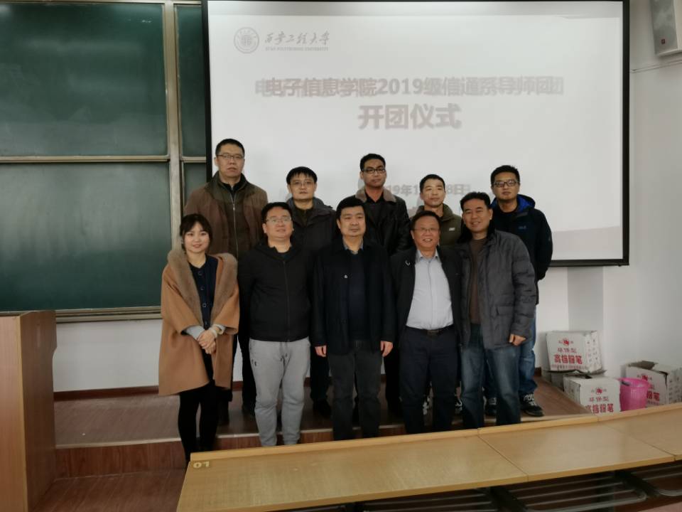 为了深入贯彻落实习近平新时代中国特色社会主义思想和党的十九大精神,贯彻落实十九届四中全会和全国教育大会精神,深化“三全育人”综合改革,完善立德树人体制机制,调动整合学院和社会各界资源,努力提升思想政治教育工作质量,努力构建德智体美劳全面培养的教育体系,全面提高人才培养质量,jxf吉祥网手机在线于2019年12月18日在B-235教室召开了2019级信通系导师团开团仪式,参与本次开团仪式的有发展规划处处长王劲伟、电气系教师王延年、廉继红、郭华、卫建华、陈鑫、孔垚等,jxf吉祥网手机在线党委副书记刘许、辅导员张天老师及2019级信通系全体同学。