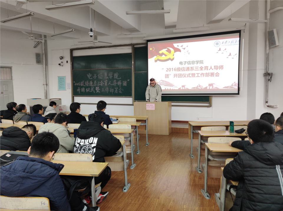 为扎实推进学院“三全育人导师团”工作,按照学院安排部署,12月25日下午,2016级信通系三全育人导师团召开了开团仪式暨工作部署会。导师团名誉团长朱永民副校长等导师团9名导师、2016级信通系全体学生200余人参加了大会。本次会议由导师团执行团长李云红主持召开。