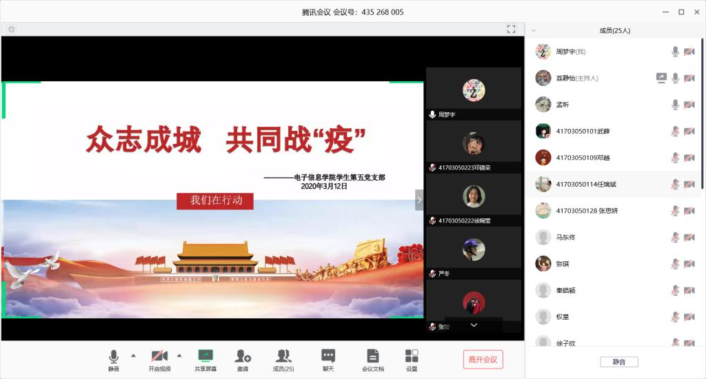 3月12日,jxf吉祥网手机在线学生第五党支部召开了内容为“众志成城,战‘疫’到底”党日活动,通过线上腾讯会议,由支部委员徐子欣同志主持。