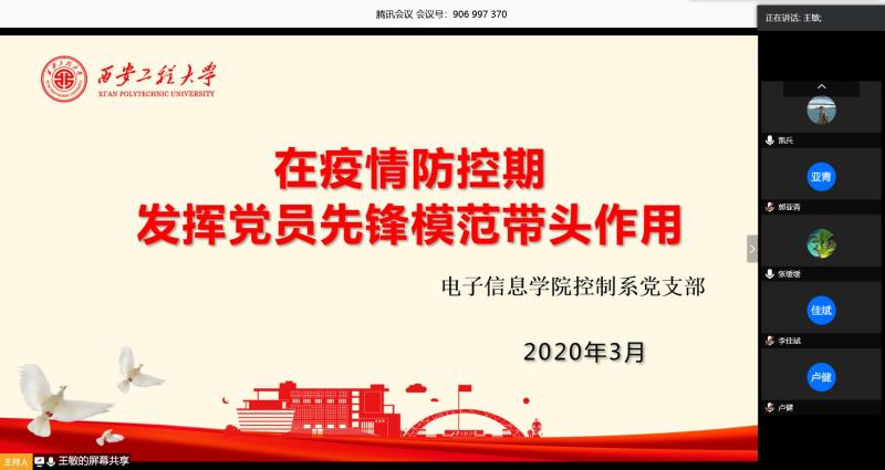 景军锋还说道,在疫情特殊时期,支部党员都能发挥模范带头作用,积极投身学校各项工作之中。党员张凯兵在网上指导和帮助2020年国家基金申报的青年老师修改基金申请书,积极联系校外专家对6项申请书进行函评;党员卢健组织系部教师,深挖网络资源,学习网上教学优秀案例,做到停课不停学的同时,确保教学质量;党员张蕾对学院的研究生工作更是做到细致入微;党支部中还有很多党员都是“三全育人”导师团的骨干教师,也纷纷在网上给学生开展各种专业指导和思政教学等等。