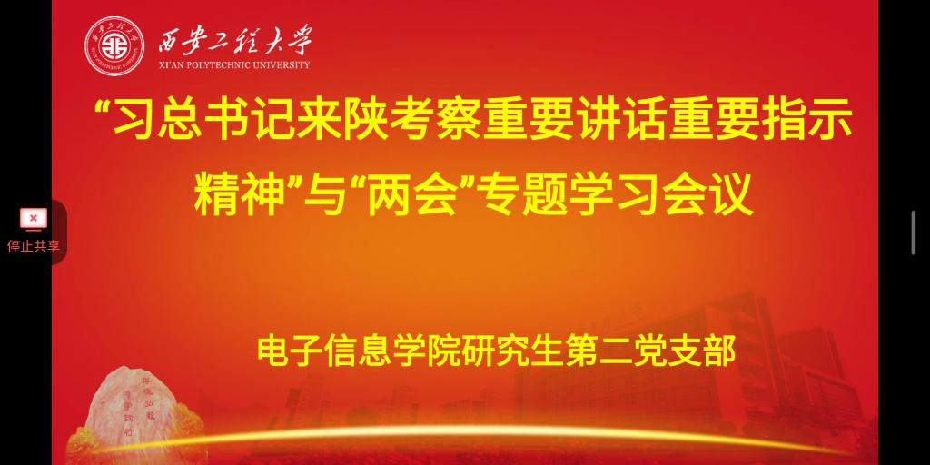 2020年5月21日,jxf吉祥网手机在线研究生第二党支部在线上召开了以“习近平总书记来陕考察重要讲话重要指示精神”与“两会”专题学习会议”为主题的党员大会。支部书记刘许与32名党员及积极分子参与了本次会议。