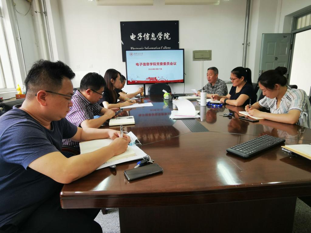 5月27日下午3点,jxf吉祥网手机在线在临潼校区电信楼414会议室召开党委会议,传达学习学校近期重要会议精神及安排部署学院近期党建、安全工作等重要内容。学院全体党委委员参加了此次会议,会议由党委书记杨恩科主持。