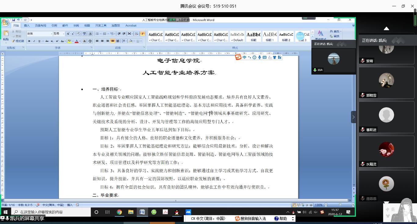 为了扎实推进2020版本科培养方案修订工作,jxf吉祥网手机在线于6月12日下午,召开2020版本科专业培养方案修订线上论证会,学院邀请西安理工大学张二虎教授、段建东教授、空军工程大学刘昌云教授、西安曼海特工业技术有限公司曹跃进高级工程师、国网陕西省电力公司电力科学研究院王建波高级工程师、杭州感想科技有限公司刘屹副总经理作为论证专家。校外专家/企业专家、教学副院长、各系部主任、各专业负责人、实验中心主任、专业骨干教师、教学秘书参加了线上会议。会议由教学副院长李云红主持。