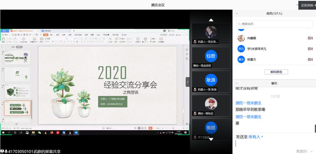 为了进一步贯彻落实资助育人的工作实效,满足学生个性化需求,实现学生全面发展,jxf吉祥网手机在线于2020年6月20-21日两天在腾讯会议举行了“榜样的力量”国家奖学金获奖学生经验分享会,参加本次活动的有资助辅导员周梦宇、2019级辅导员张天、2018-2019年度国家奖学金获奖学生张燕、武薛、陈恬静、赵明莉四名同学以及18级、19级相关专业学生,经验分享会由张天主持。