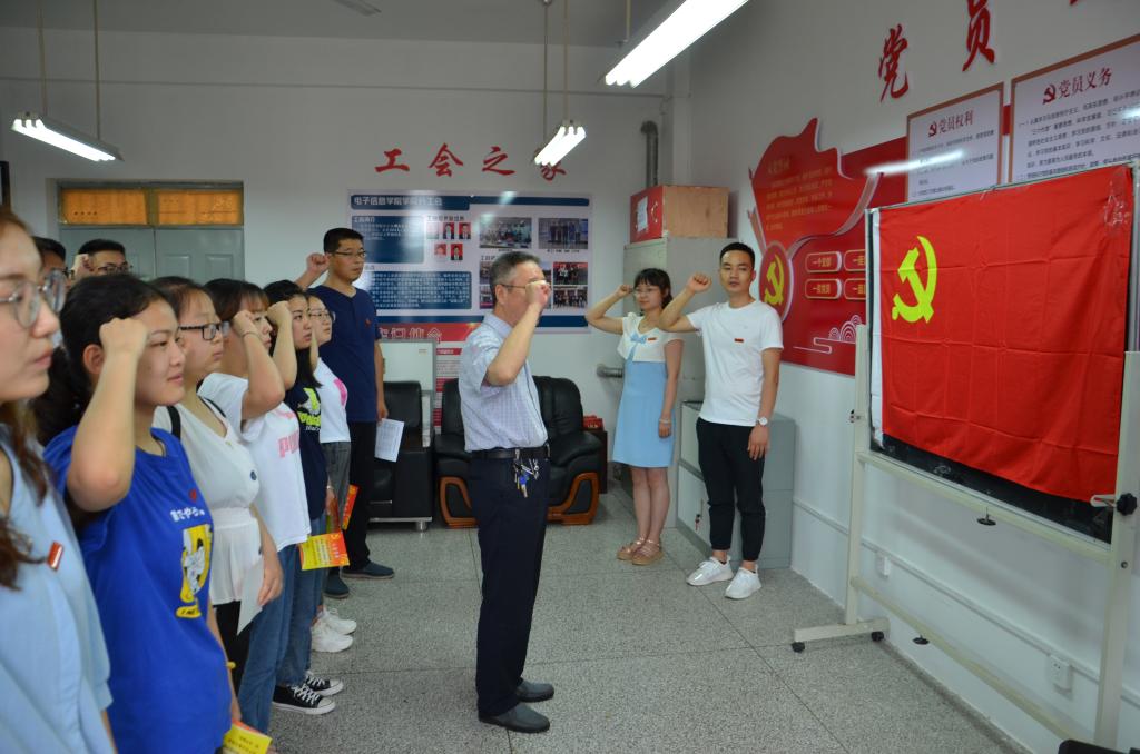 2020年7月1日,在临潼校区电信楼419教室,jxf吉祥网手机在线党委召开了“七一”新党员入党宣誓仪式。院党委书记杨恩科、学生党支部书记朱宇军、赵立涛、黄木委、19级年级辅导员张天和18名预备党员参加了此次宣誓仪式。会议由学院学生工作办公室主任朱宇军主持。
