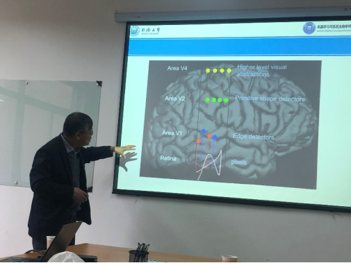 会议伊始,首先由张蕾副教授代表学院领导对黄德双教授的到来表示热烈欢迎,并希望通过这次学术交流推进学院与国内知名大学合作,促进研究生学术发展。随后黄德双教授就人工智能与深度神经网络主题生动地讲述了人工智能的发展历程、国内外学术专家如何解决了深度神经网络发展过程中所遇到的问题,最后对自己团队研究课题植物图片分类、交通行为识别分析等进行了介绍。