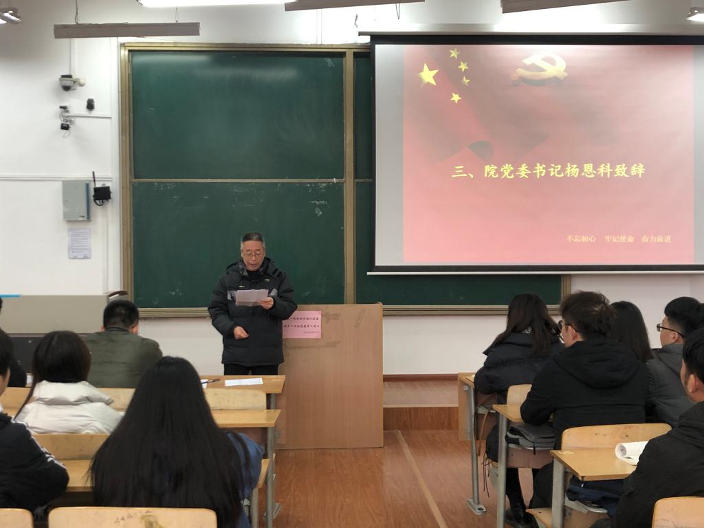 为学习贯彻习近平新时代中国特色社会主义思想和党的十九大精神,贯彻落实《中国共产党发展党员工作细则》,进一步提高入党积极分子的思想政治素质和政治理论水平,明确入党目的,端正入党动机,2020年12月1日中午12点,jxf吉祥网手机在线党委在B-135教室举行了学院第十三期入党积极分子培训班开班典礼。院党委书记杨恩科、各党支部书记及86名入党积极分子参加了此次典礼,大会由学院学工办主任朱宇军主持。