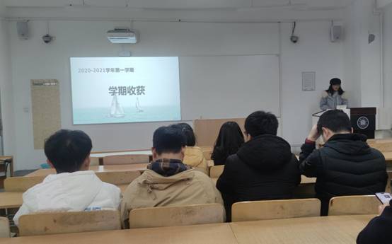 会议伊始,同学们从自我介绍、一学期以来学习的得失、学习生活的感想、本年度的规划四个方面进行了介绍,每人5-8分钟。每位同学都准备充分,深刻的反思了自己上一学期的学习生活,也明确了本学期的学习目标,整体上对自己下一阶段的学习生活有了一定的规划。