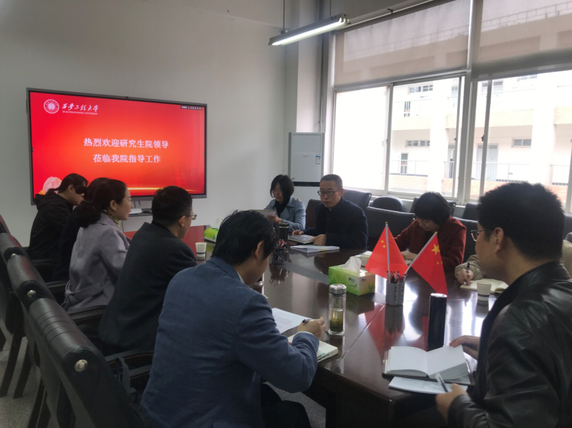 会上,景军锋院长代表学院对研究生院的调研表示欢迎和感谢,并介绍了我院研究生招生、分类培养、日常管理等方面的情况。张蕾副院长详细介绍了我院2021届研究生对标学校授位审核条件的情况,接着张院长反映了学院在现阶段发展中遇到的问题和困难。会上,研究生招生工作负责人、研究生秘书和辅导员也针对研究生招生工作、培养工作、日常管理工作先后提问发言。