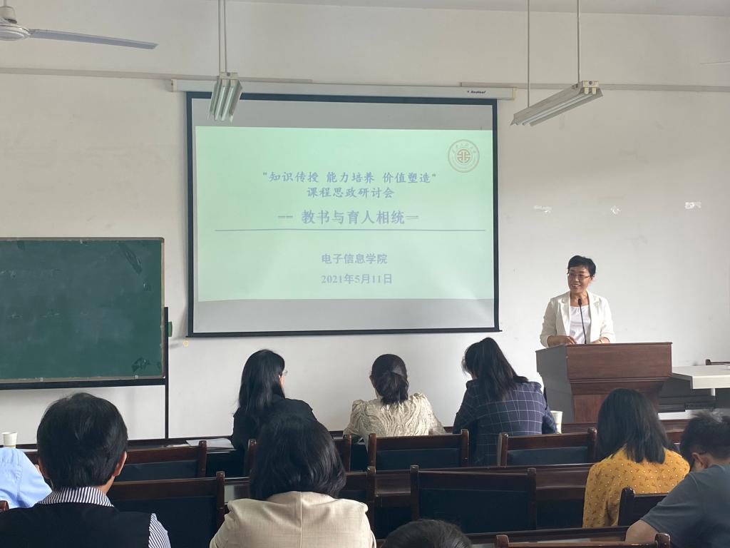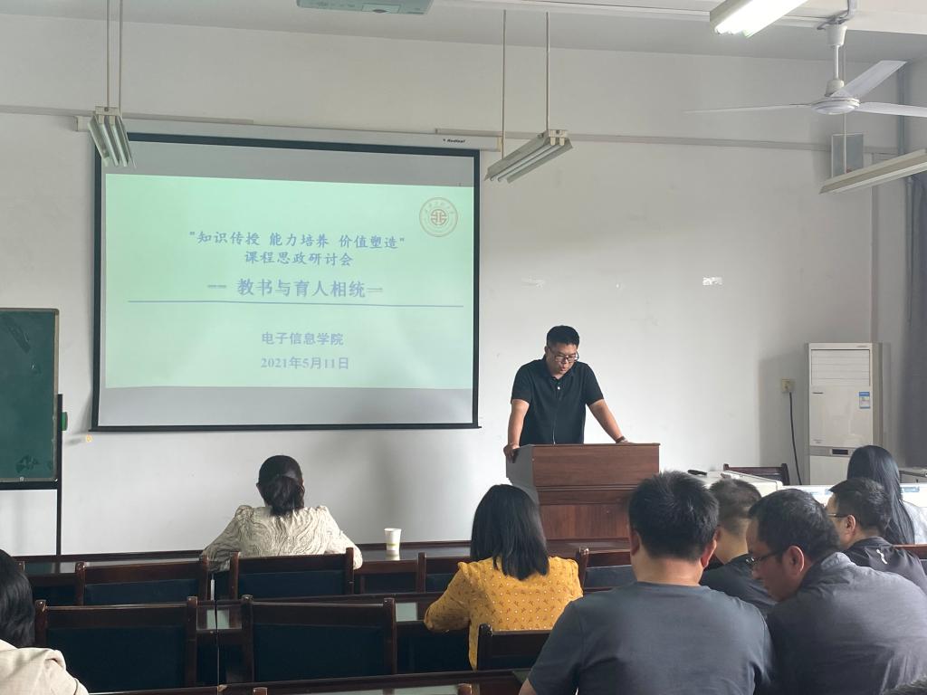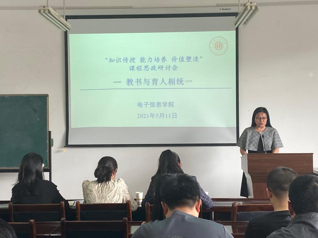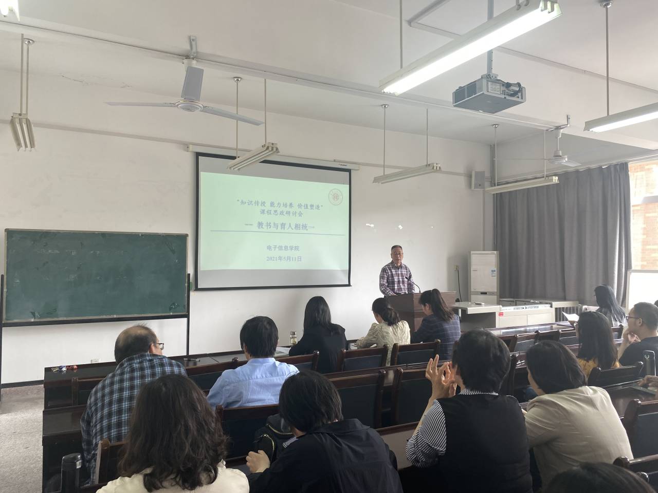 接着,学院四个系部的八位老师围绕“课程思政”交流发言,有的从宏观角度谈课程思政的重要性,有的结合具体课程,如《现代电子系统设计》、《工程伦理》分享了课程思政元素在具体课程中的融入及课题选择、讲授、设计上的考量和困惑,有的从“课堂上”走向了“课堂外”,指出德育教育既要以课堂为主渠道,也要通过日常的“言传身教”时时引导学生的价值走向。之后与会教师进行了交流与讨论。