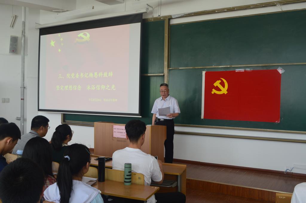 开班仪式在庄严的国际歌中拉开帷幕。首先,院党委书记杨恩科为大会做了主题为《坚定理想信念 沐浴信仰之光》动员讲话,他要求全体学员要充分认识本次党课培训的意义,接着他从党的性质里、从党所继承的中华民族优秀文化传统里、从一代代党员先锋模范里、从一桩桩中国共产党攻坚克难取得巨大成功中为同学们讲授中国共产党为什么“能”的深刻内涵。杨恩科强调全体学员要珍惜机会,勤学善思,实现行动与心动的统一:一要潜心学习,端正入党动机;二要严于律己,端正学习态度;三要严于修身,注重深入思考。最后他希望同学们能够潜心学习、淬炼思想、立根铸魂,在沐浴信仰之光中勤奋学习、领悟真谛、增长本领、接续奋斗,努力成为爱国、励志、求真、力行的新时代大学生,勇敢肩负起时代赋予的重任,在实现中华民族伟大复兴中国梦的生动实践中放飞青春梦想。