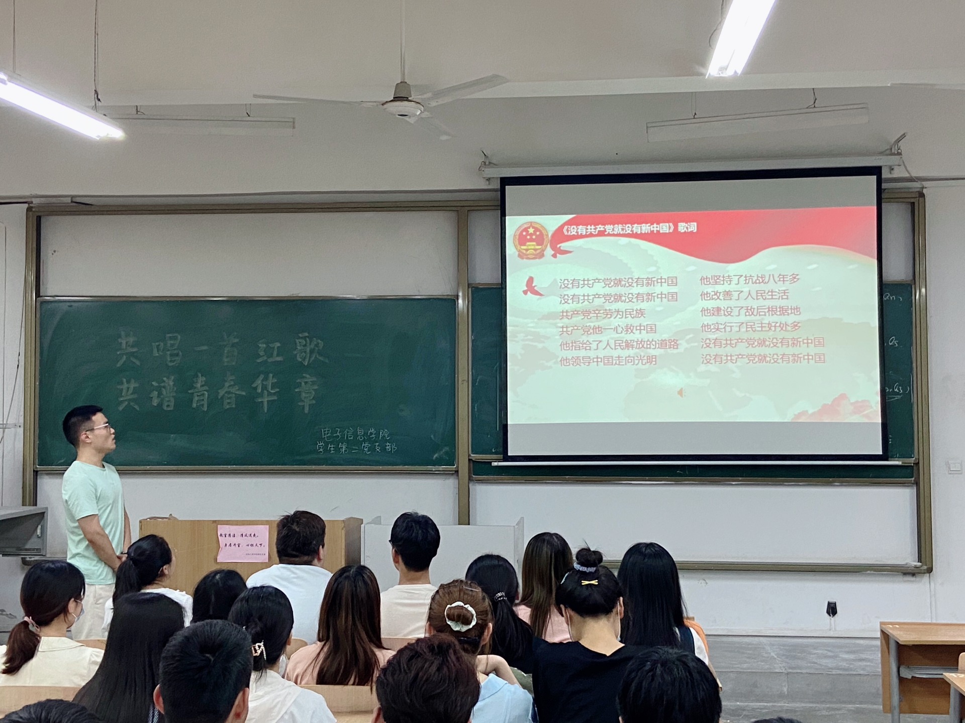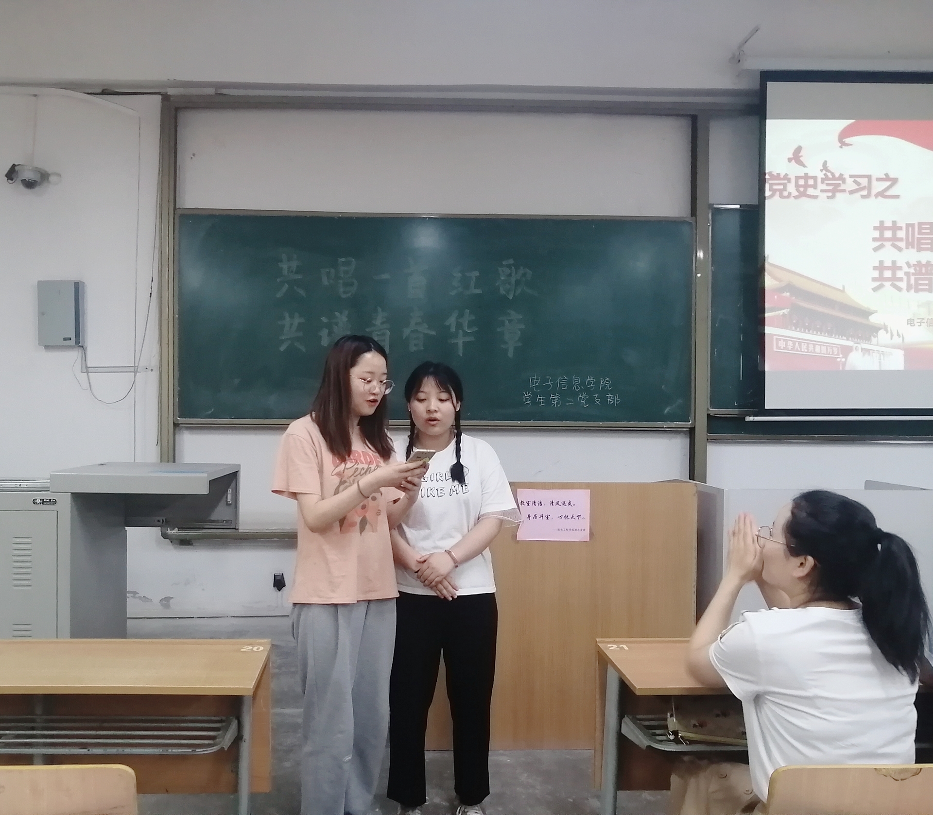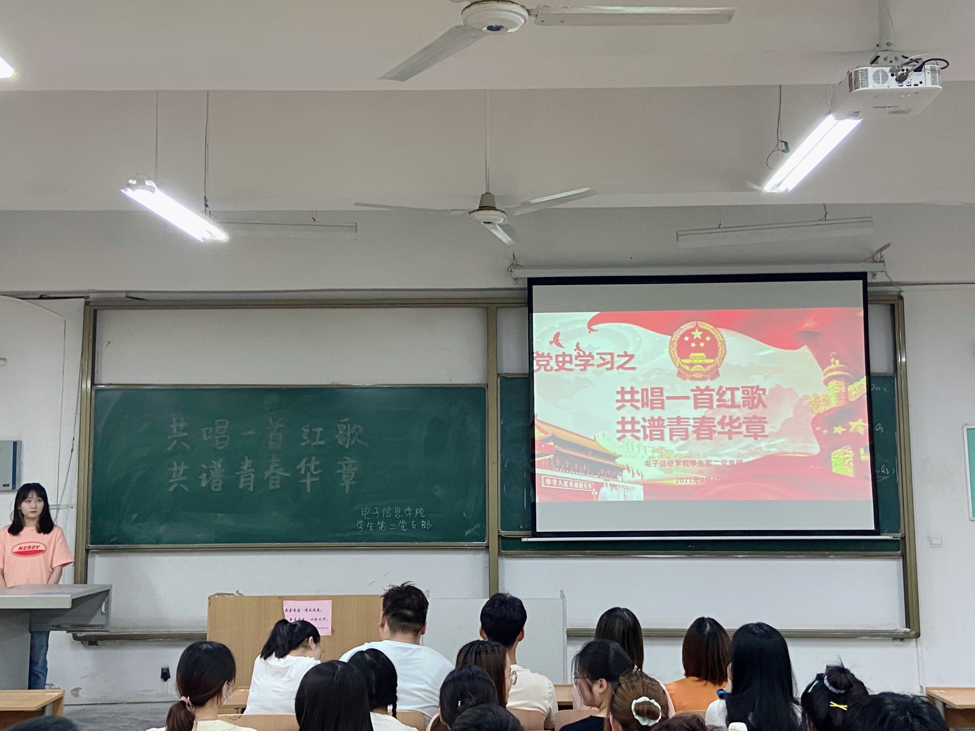 红歌献给党,深情颂祖国。在中国共产党成立一百周年来临之际,为扎实推进党史学习教育,积极践行“五个一”献礼行动,2021年6月4日下午,在教学楼A-232,jxf吉祥网手机在线学生第二党支部开展了“共唱一首红歌,共谱青春华章”为主题的唱红歌、颂党恩党日活动。支部书记刘风萍、全体党员及部分入党积极分子共同参加。