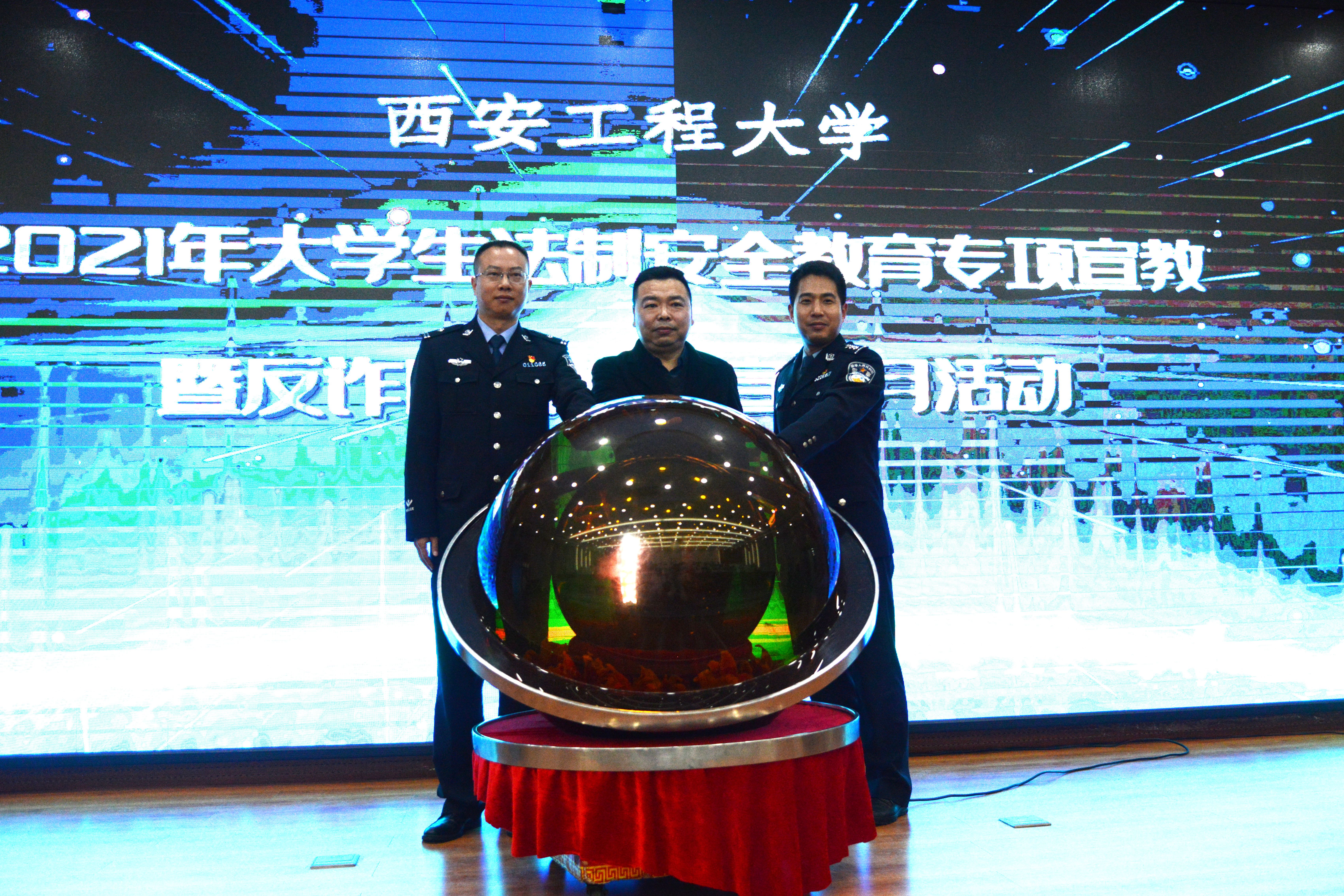 党委学生工作部部长张慧首先介绍了我校2021年大学生法制安全教育专项宣教暨反诈防骗教育宣传月活动有关工作安排。西安市公安局临潼校区分局斜口派出所教导员王海锋,结合自己多年的执法办案经验,介绍了当前电信网络诈骗违法犯罪活动的特点,以及防范电信网络诈骗的基本常识。随后,校党委副书记赵小峰讲话,他充分肯定了开展此次专项教育宣传活动的重要性和必要性,并对工作的具体落实提出三点意见:一是要认清形势、统一思想、提高认识,深刻理解反诈防骗教育的重要意义;二是要围绕主题、立足本职、协同推进,积极形成校园反诈防骗工作的强大合力;三是要多措并举、严明纪律,持续巩固平安校园建设成果。他强调,学校当前进入全面建设高水平教学研究型大学的“十四五”规划发展阶段,“爬坡上行”更需要一个安全、稳定、和谐的发展环境,全校师生要树牢安全稳定底线意识、红线意识,共建平安西工程大。副校长朱永民就做好反诈防骗教育宣传提出三点要求,一要结合实际统筹安排推进;二要加强校、警协同提升教育质量;三要注重工作落实,主动破解工作中的重点、难点问题。最后,校、地双方领导共同登台,正式启动此次专项教育宣传活动。