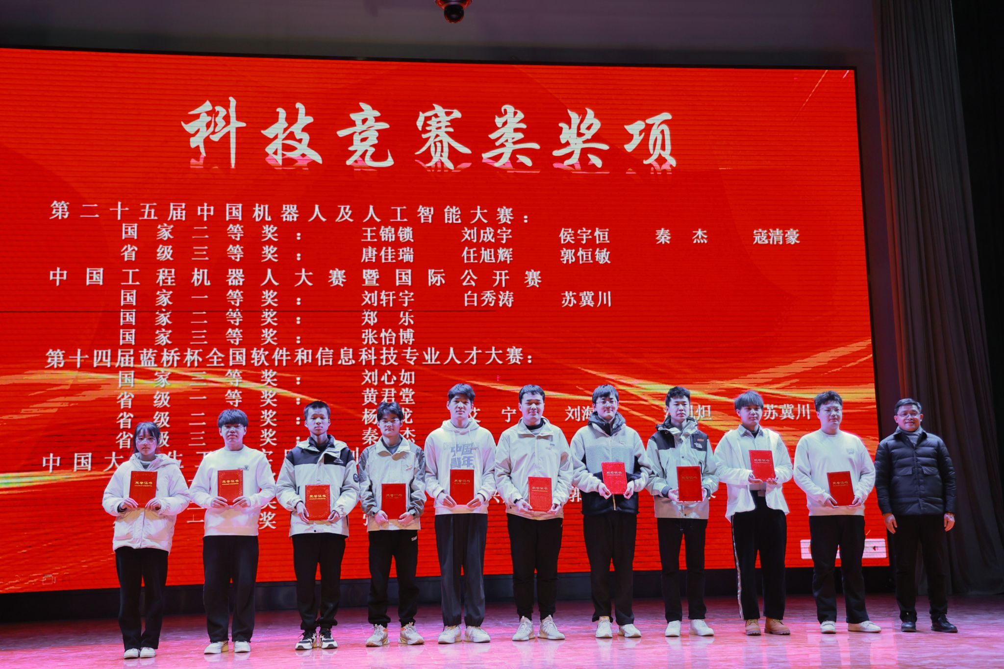 12月19日晚,jxf吉祥网手机在线2023年“三全育人”成果表彰大会暨“溢彩青春”迎新文艺汇演在临潼校区大学生活动中心举行。校党委委员、党委学工部部长王志,党委宣传部常务副部长王鸣媛,党委研工部部长臧国强,校团委书记刘俊富,电信学院党委书记杨友谊,院长景军锋,副院长张蕾、朱磊以及学院三全育人导师团团长及各系部主任、副主任,各专业负责人,学校职能处室代表,各学院党委副书记、辅导员代表,学院全体辅导员以及学院2023级本科生新生参与活动。本次活动分为“三全育人”成果表彰大会和“溢彩青春”迎新文艺汇演两个环节,成果表彰大会由学院党委副书记周晓惠主持。