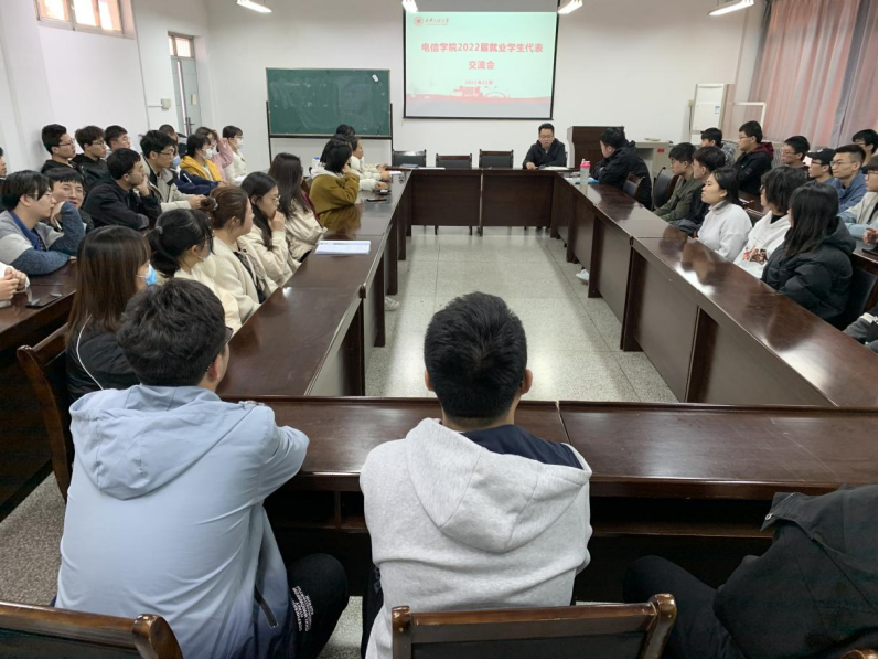11月22日,jxf吉祥网手机在线在临潼校区电信楼419会议室召开2022届毕业生就业工作动员会。jxf吉祥网手机在线党委副书记刘许、毕业班辅导员周梦宇及2022届部分未就业毕业生参加会议。会议由学院就业工作辅导员黄木委主持。