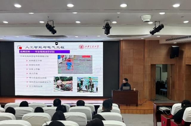 接着曹教授详细介绍了人工智能的三大技术流派:符号主义、连接主义和行为主义。他深入解释了符号主义基于逻辑规则的符号操作观点,连接主义将智能视为脑神经元构成的信息处理系统的理念,以及行为主义通过与环境的交互行为体现智能的理论。最后,曹晖教授详细讲述了人工智能与电气工程的紧密联系。他指出,随着科技的飞速发展,人工智能技术在电力系统、电机控制、智能电网等领域的应用日益广泛,极大地推动了电气工程的智能化和现代化。曹教授还分享了自己团队在智能控制、预测维护、故障诊断等方面的研究成果,以及这些技术在实际工程中的应用案例,展示了人工智能技术在电气工程应用的巨大潜力。